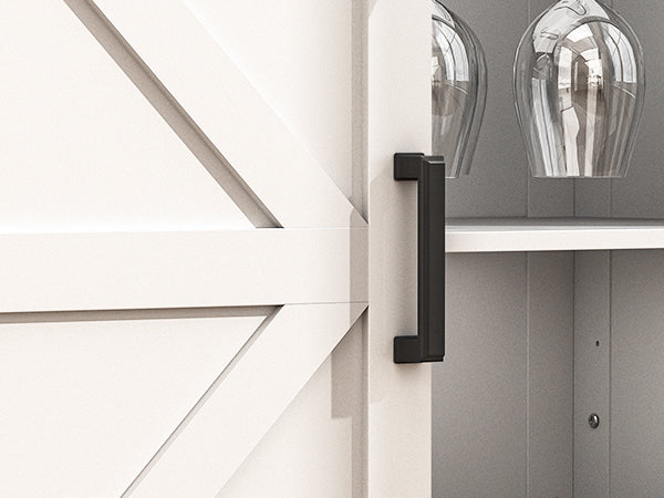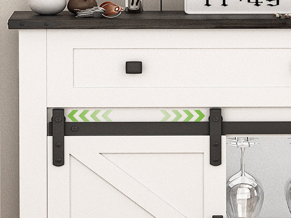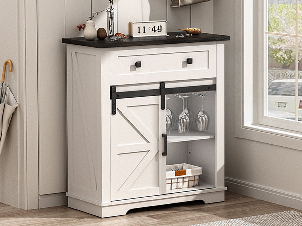 Winlice Farmhouse Coffee Bar Cupboard Cabinet with Drawer, Adjustable Storage Shelves, Modern Buffet Sideboard with Sliding Barn Door for Kitchen, Bathroom, Living Room, 32 Inch White